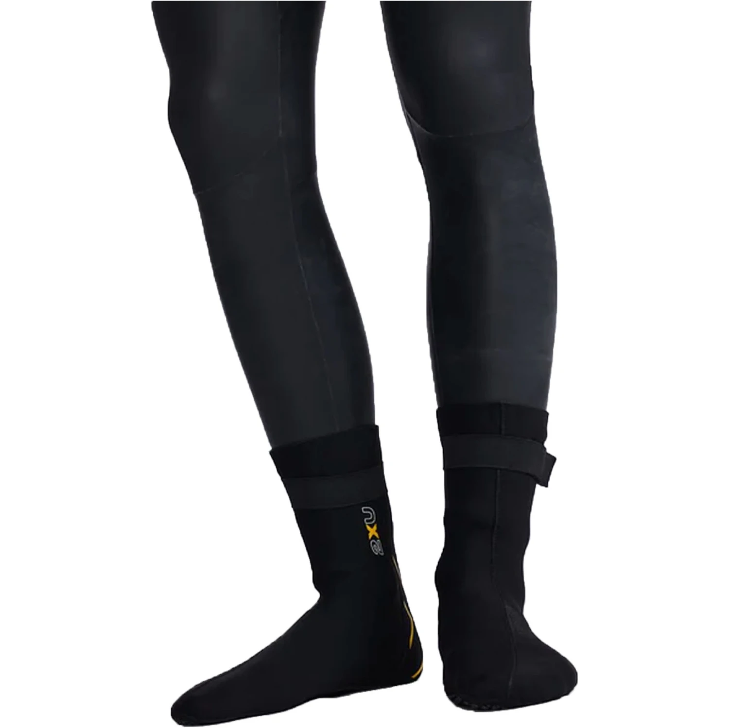 - SECURE FIT: Longer length with velcro ankle strap allow the booties to be tucked over or under the wetsuit, so there is no exposed skin and to prevent ballooning with water during swimming.