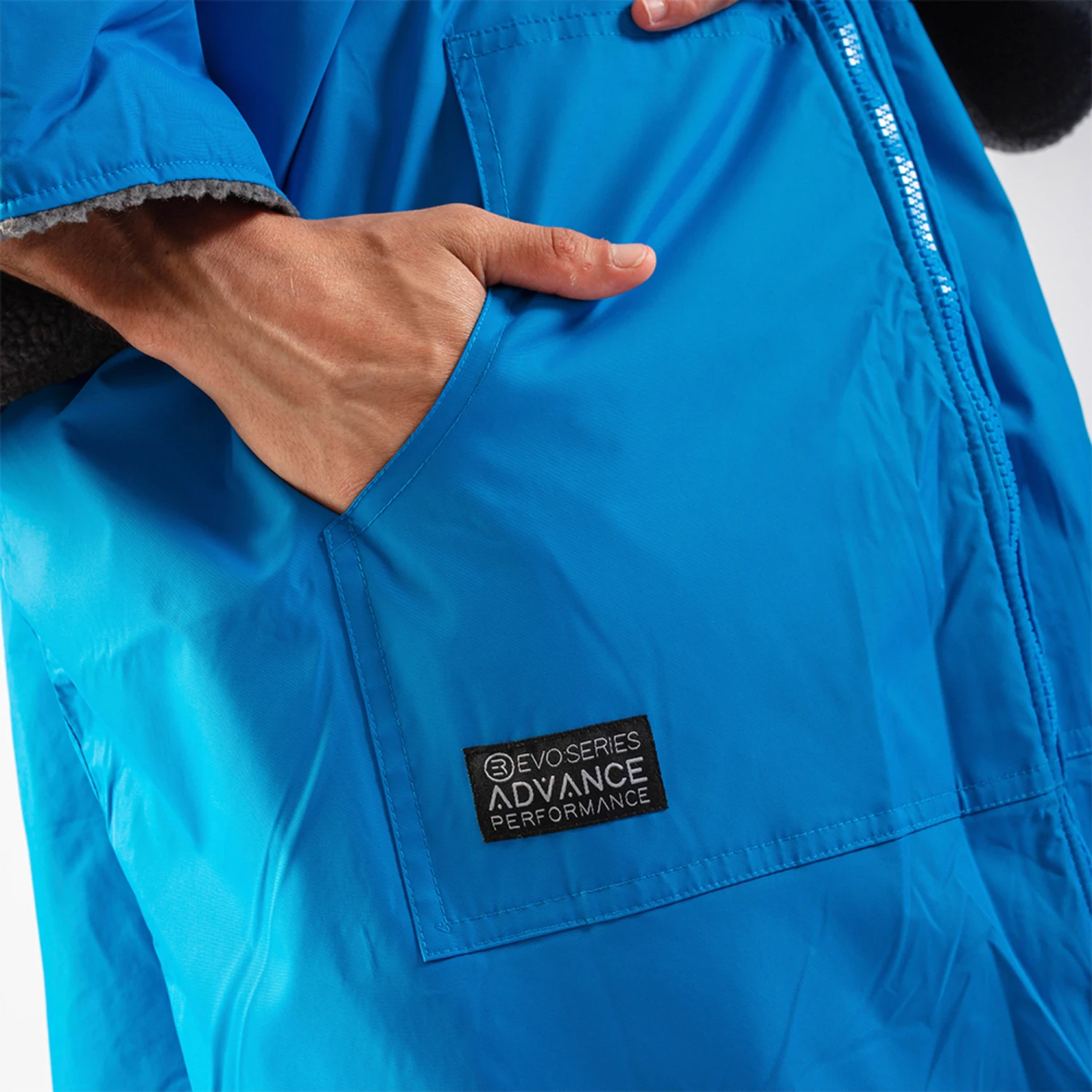 The oversized hood allows room for anyone wearing a bobble hat and there’s a full length two-way, zip. A large two handed pouch pocket on the front of the EVORobe has a soft cosy lining and the robe also has a secure internal zipped pocket.